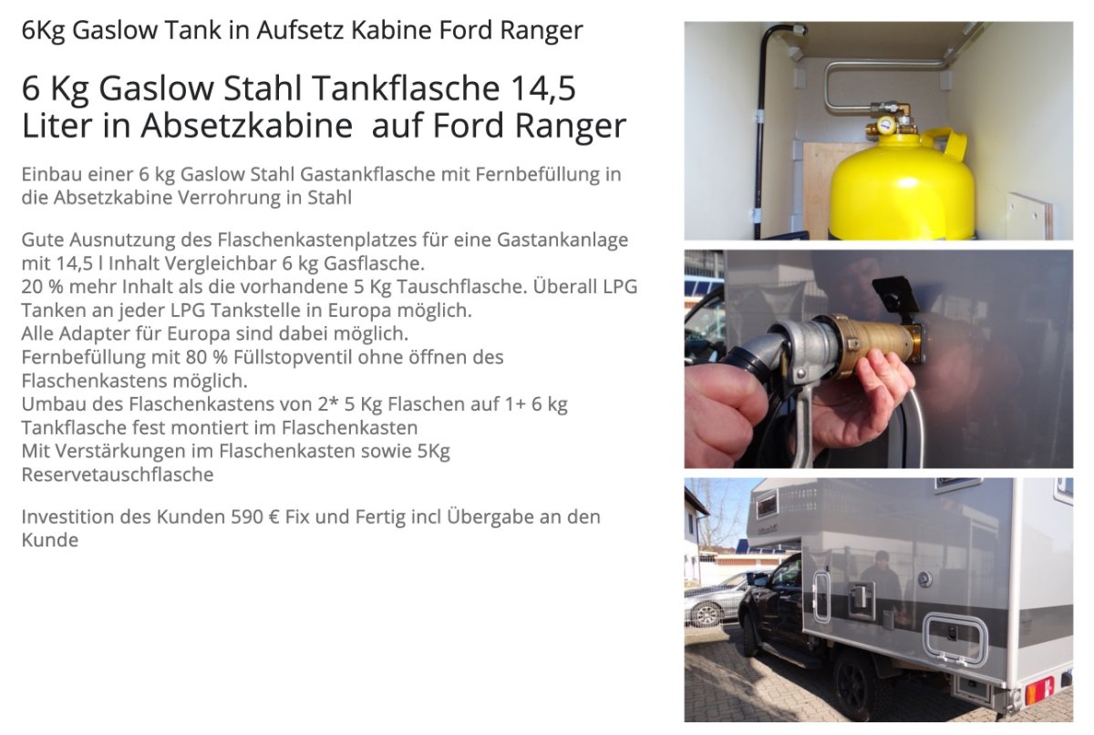 I found a post on freizeit-ecke-weber.de where they installed a single gaslow bottle with a german 5kg bottle as spare - definitely not an ideal solution - see below.