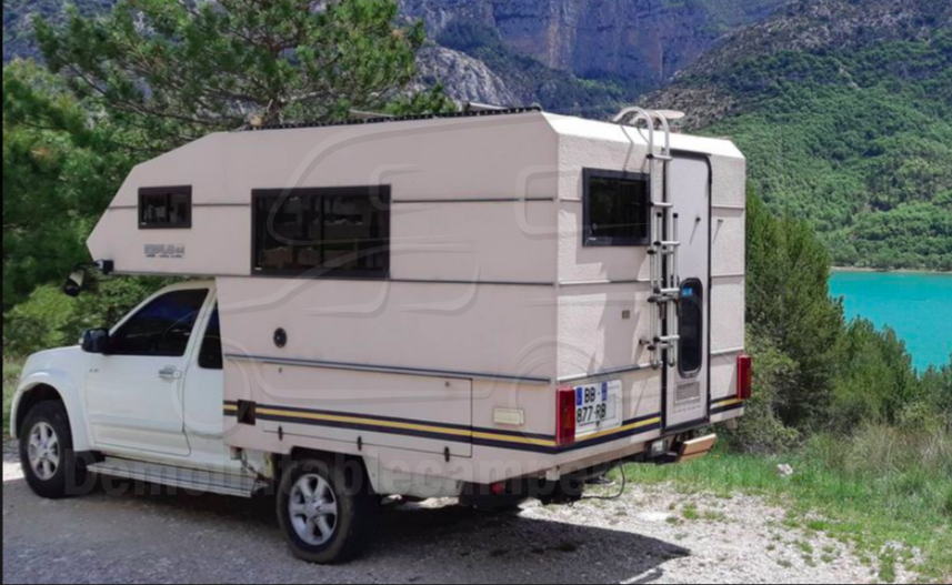 Translation; 'The Bimobil Husky 250 is older, but was completely rebuilt in 2017. The cladding inside and out is new. Likewise, the entire interior. The special feature is the floor plan. For the children two bunk beds in the rear and in the alcove a large longitudinal bed for the parents, that's enough space. Nevertheless, a small sanitary area is separated for a toilet. If necessary, there is a Thetford Porta Potti WC. The cabin needs a few remaining work, but has already proven on the first major family tour.