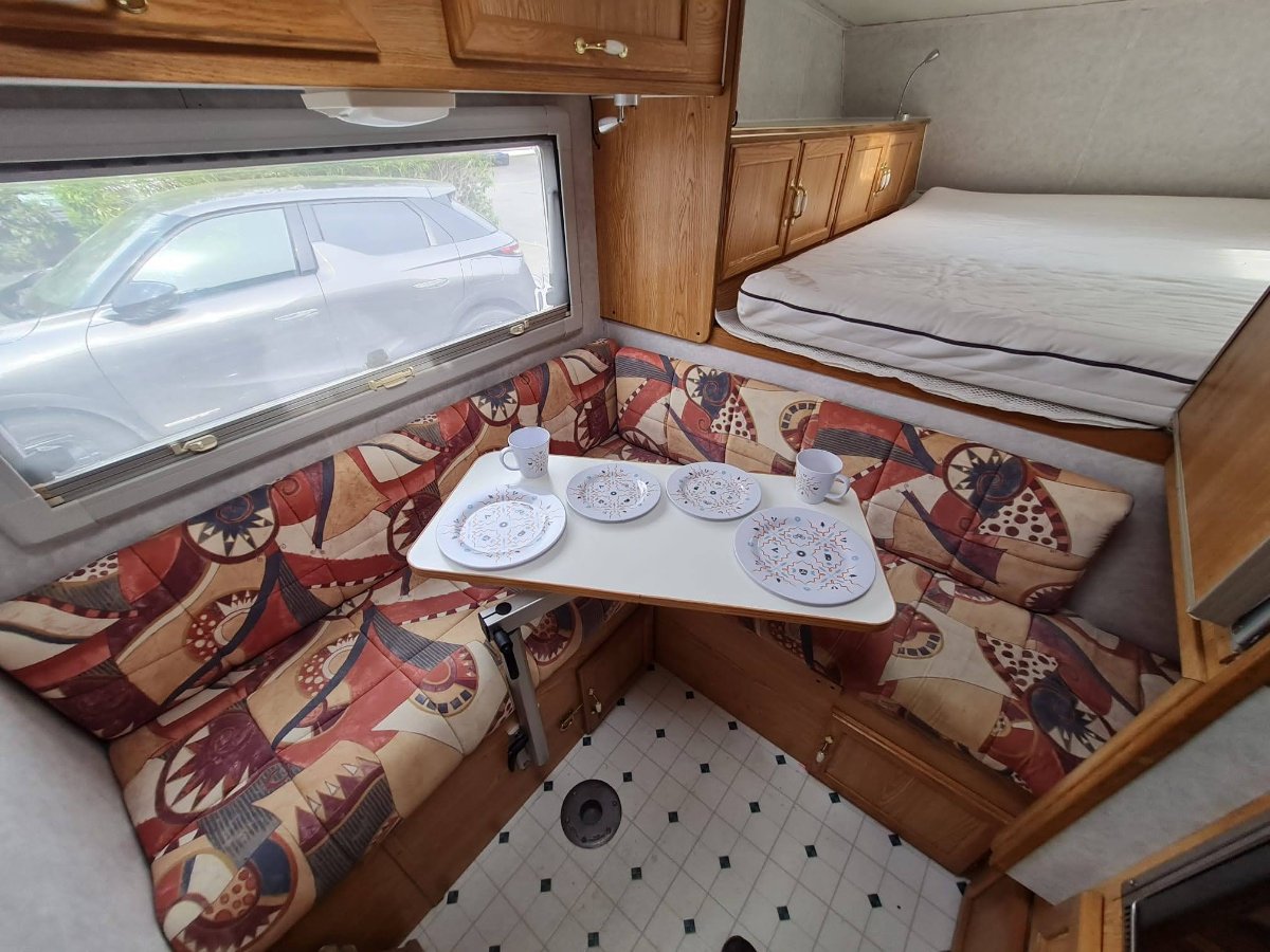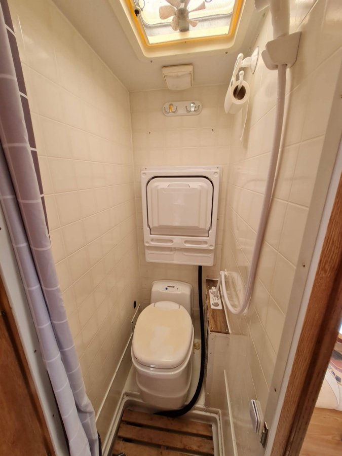 A double bed over the cab with mattress, storage cupboards, sink and drainer, 4-burner hob, gas oven, grill and extractor fan, Dometic fridge/freezer (works on mains or gas), wet room including a Thetford cassette toilet and newly fitted pull-down sink and shower, hot and cold water tanks, gas heated hot water and air heating, Lagun swivel detachable table leg and table, and two bench seats with cushions. There is also a small electric powered heater which works on hook-up only. There is also a single solar panel, believe it’s 100w and a controller fitted under the fridge, please see the photos.