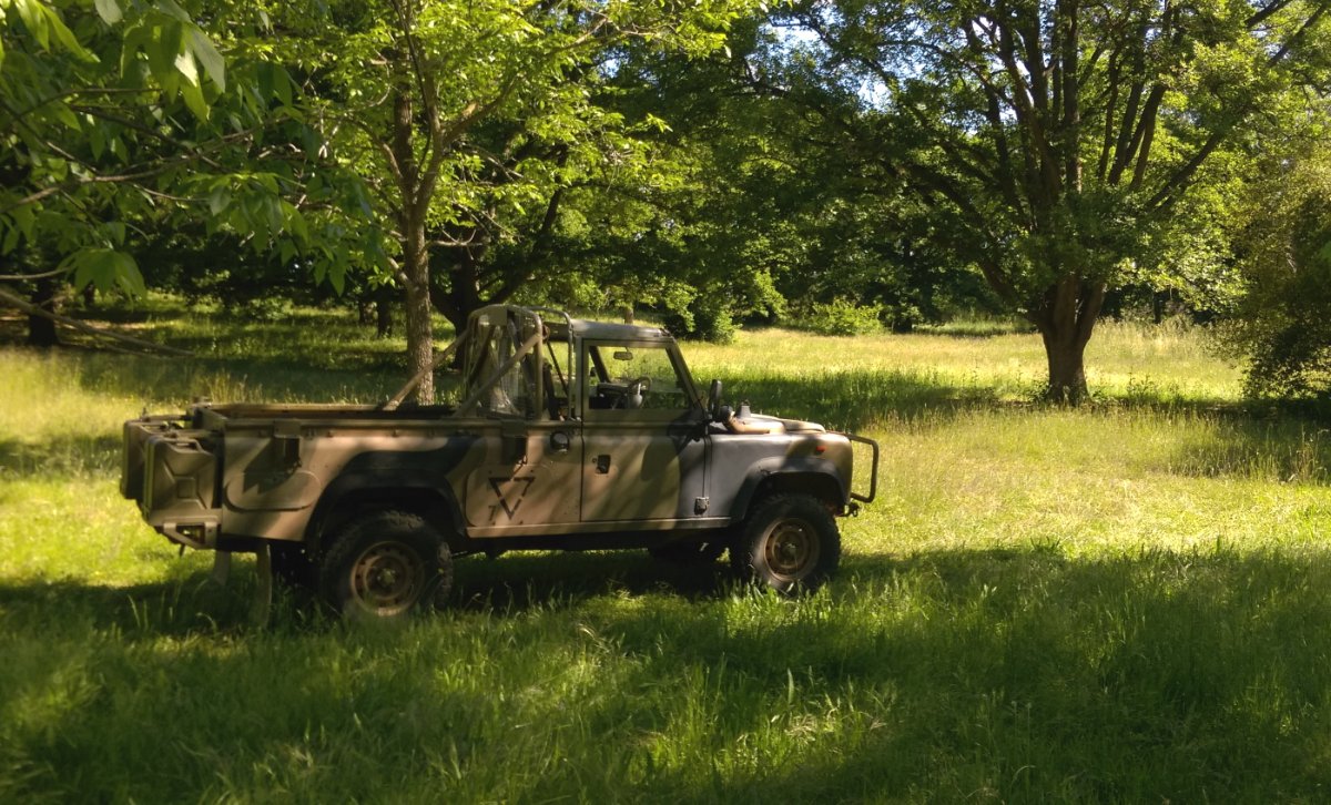 Our Landy is a 1990 ex-military FFR and does not have a tailgate as such, it has a cut down rear panel (a "troop scoop"). The exact opposite to a modern tub such as is on the Defender 130. We have enjoyed pedalling older military Land Rovers and maintaining them.