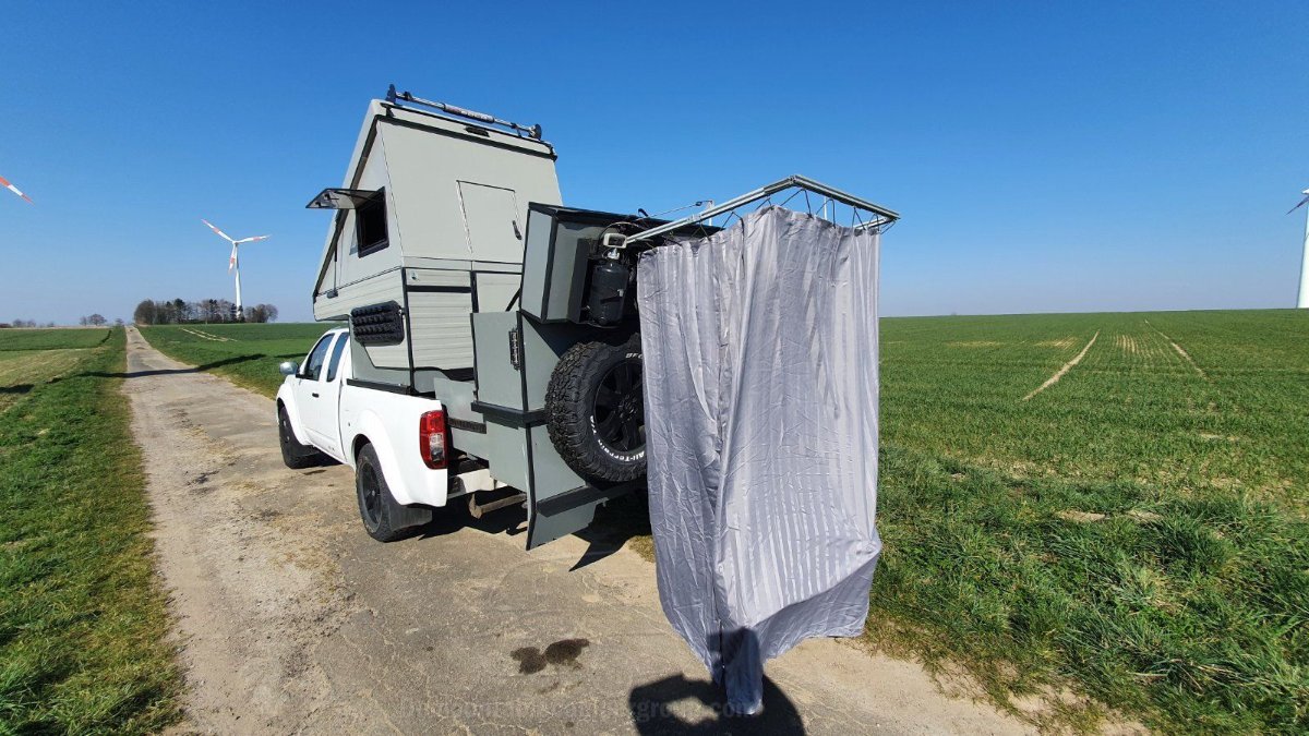 Rear awning, side external shower/ toilet awning.