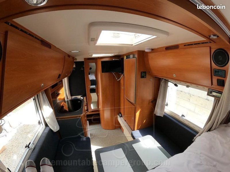 The interior of the Revolux 2.5 Ultra Light is a symbiosis of the natural and the modern. Its spaciousness is the result of our ergonomics and usability research. The tan real wood veneer furniture enhances the experience of natural surroundings.
