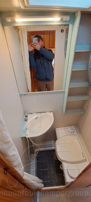 Shower and thetford toilet, Double bed that sits over cab and 2 children fold out bunks